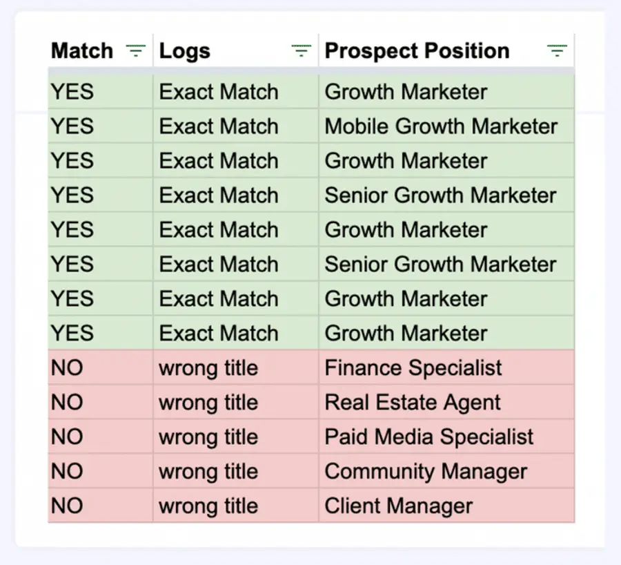 O Evaboot também verificará novamente todos os resultados de sua pesquisa para ver se correspondem realmente aos seus filtros de pesquisa do Sales Navigator.